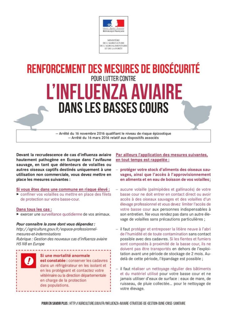 LUTTE CONTRE LA GRIPPE AVIAIRE : OBLIGATION POUR LES PARTICULIERS DE DÉCLARER LA DÉTENTION D’OISEAUX OU DE VOLAILLES