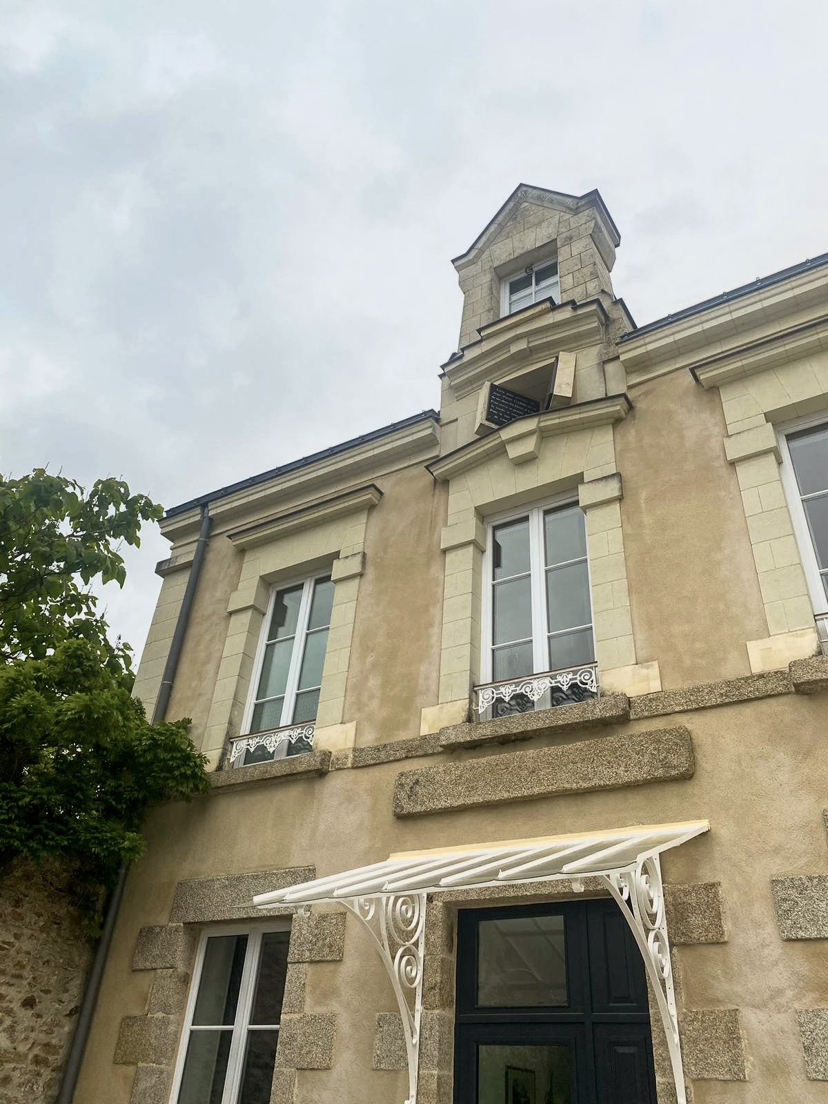 Cette façade s’approche du style néoclassique, avec deux colonnes en marbre, caractéristiques de son architecture. Mais elle est aussi inspirée de l’architecture rurale avec l’utilisation de terre cuite pour le balcon.